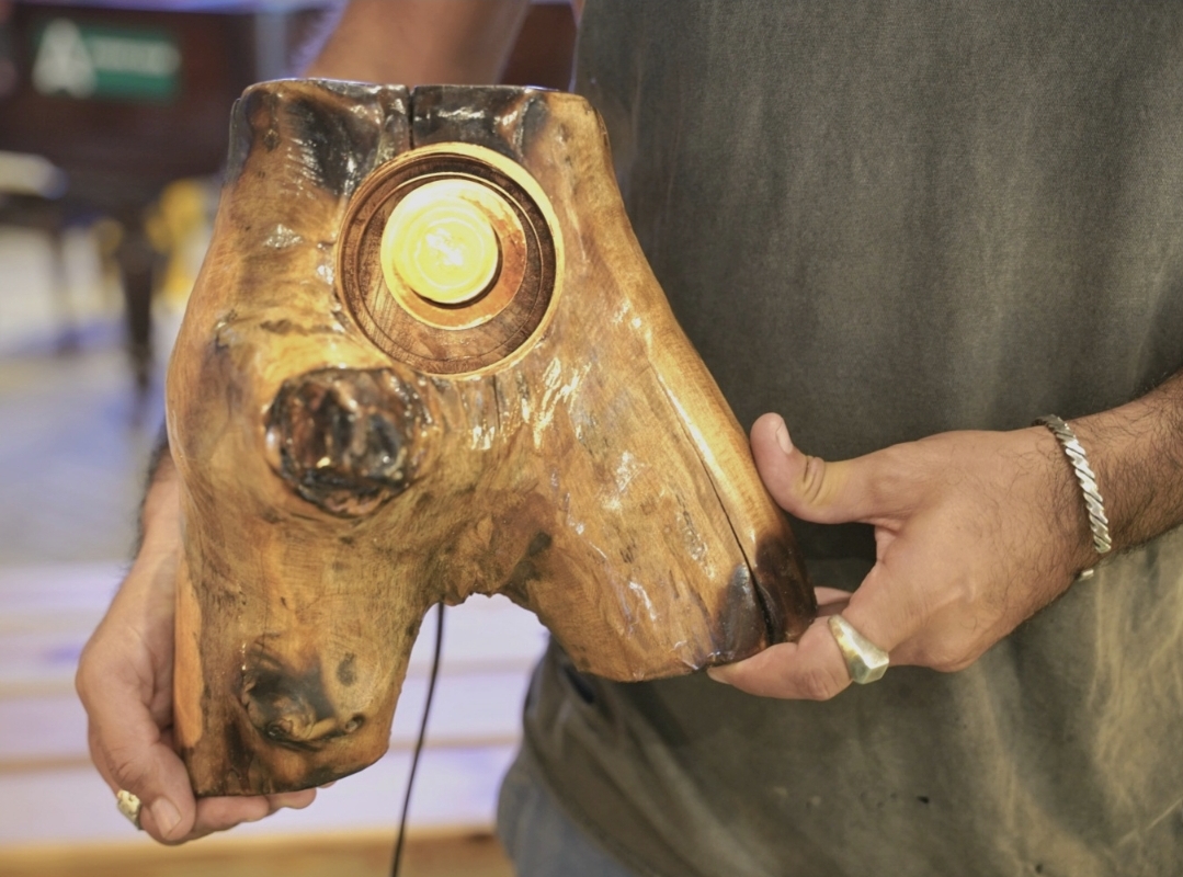 זה היה בזמן רכיבה על סוסים, כאשר נכנסו ליער באמצע שום מקום לנוף עוצר נשימה של אגמים והרי קרח. ראיתי המון פסלים בכל מיני גדלים וצורות, של אינדיאנים ואפילו של סוסים וחדי קרן… כל מיני דברים מיוחדים והכל בחריטה בעצי היער עצמם. חוויתי את זה כמחזה מדהים שגרם להשראה שלי להגיע ויצר את החלום ליצור מעץ.